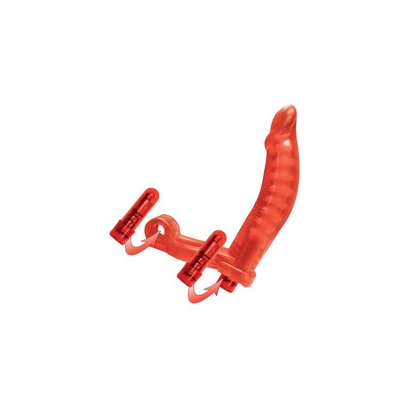 Três prazeres num só aparelho. Com este dildo poderá fazer dupla penetração. Durante a penetração desfrute da dupla vibração, com estimulação no clitóris e com o pénis vibrante.