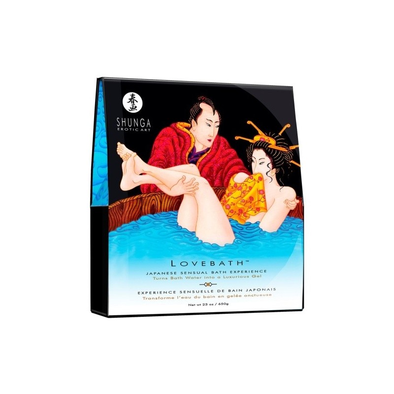 Inspirado num sensual ritual japonês, LOVE BATHS promove o erotismo. A SHUNGA oferece-lhe uma pausa no tempo para poder desfrutar de uma experiência única no banho. Basta esvaziar o conteúdo das embalagens na banheira e ver a água a transformar-se em milhares de pérolas delicadas. Este gel em pérolas enriquecedor liberta um perfume delicado por toda a casa de banho e ao mesmo tempo ilumina a água com uma cor relaxante. As propriedades terapêuticas deste gel hidratam a sua pele tornando-a suave, desejável e pronta para receber o toque suave do seu parceiro…