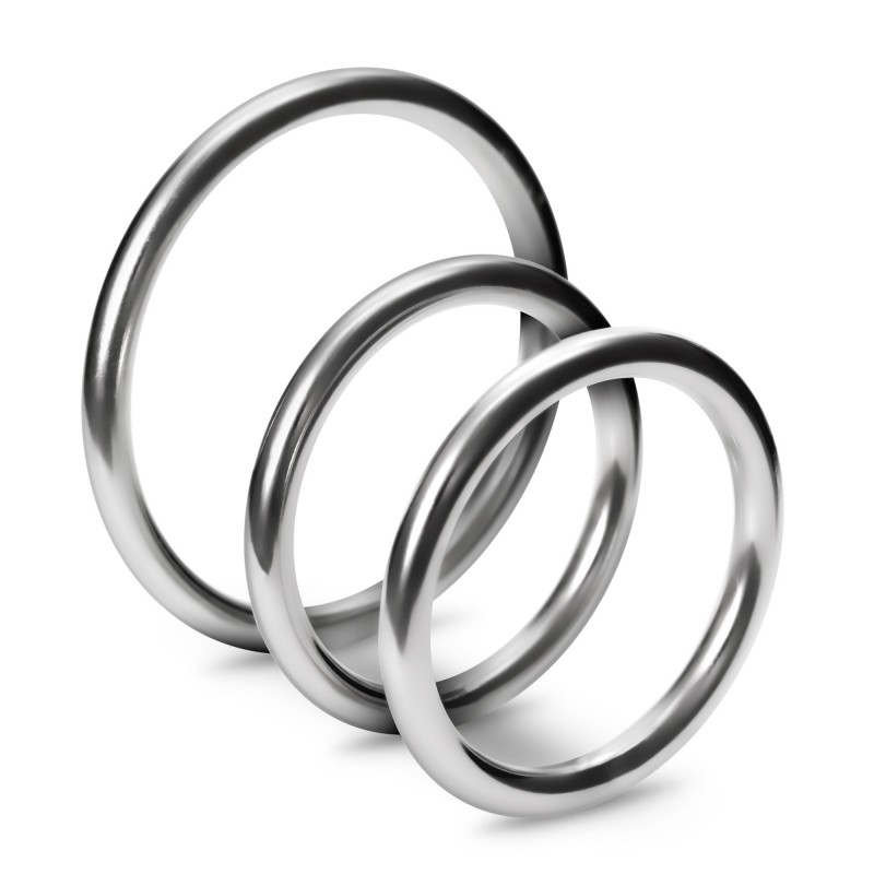 Um conjunto de 3 anéis que pode ser utilizado para prender o pénis e os testículos.