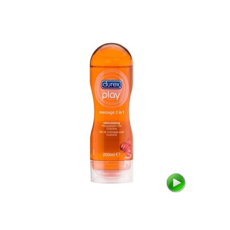 Gel lubrificante e óleo de massagem Durex 2 em 1 Guaraná. Para além de ser um gel de corpo para momentos particulares de sensualidade e divertimento, é também um lubrificante que aumenta o prazer.