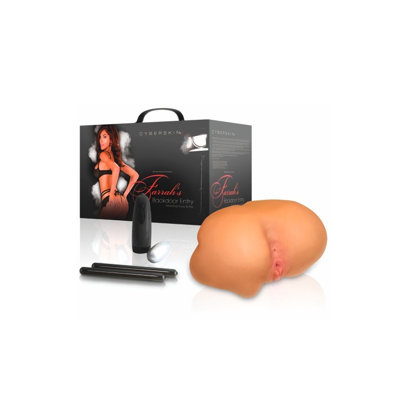 A famosa posição DOGGY STYLE (de quatro) em CyberSkin®, diretamente moldada a partir da atriz pornográfica FARRAH ABRAHAM. Terá ao seu dispor o poder da sensação mais realista graças ao material de última tecnologia, juntamente com um sistema de vibração de 6 padrões que poderá controlar a seu gosto sendo que cada padrão tem 6 velocidades. Delicie-se com as entradas apertadas da vagina e do ânus, que apresentam texturas estimulantes no seu interior. À prova de água para um uso mais divertido e com abertura no fundo para uma limpeza prática e fácil. Inclui ovo vibratório e varinha de aquecimento.