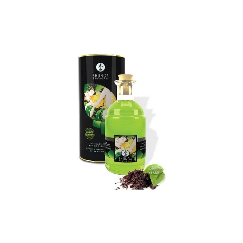 Óleo afrodisíaco com aroma e sabor a chá verde, que tem como objectivo intensificar o prazer e sensualidade nas zonas erógenas do(a) seu/sua parceiro(a). Bastam apenas algumas gotas deste óleo, para poder oferecer uma massagem erótica, em seguida bastará soprar sobre a zona massajada para provocar uma agradável sensação de calor.
